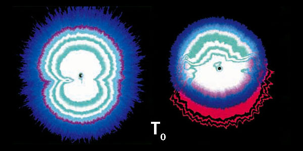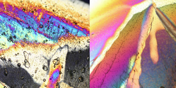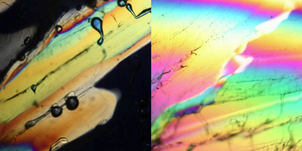 Polarisierung direkt nach Entnahme(links: normales Leitungswasser /rechts: mit UMH vitalisiert)